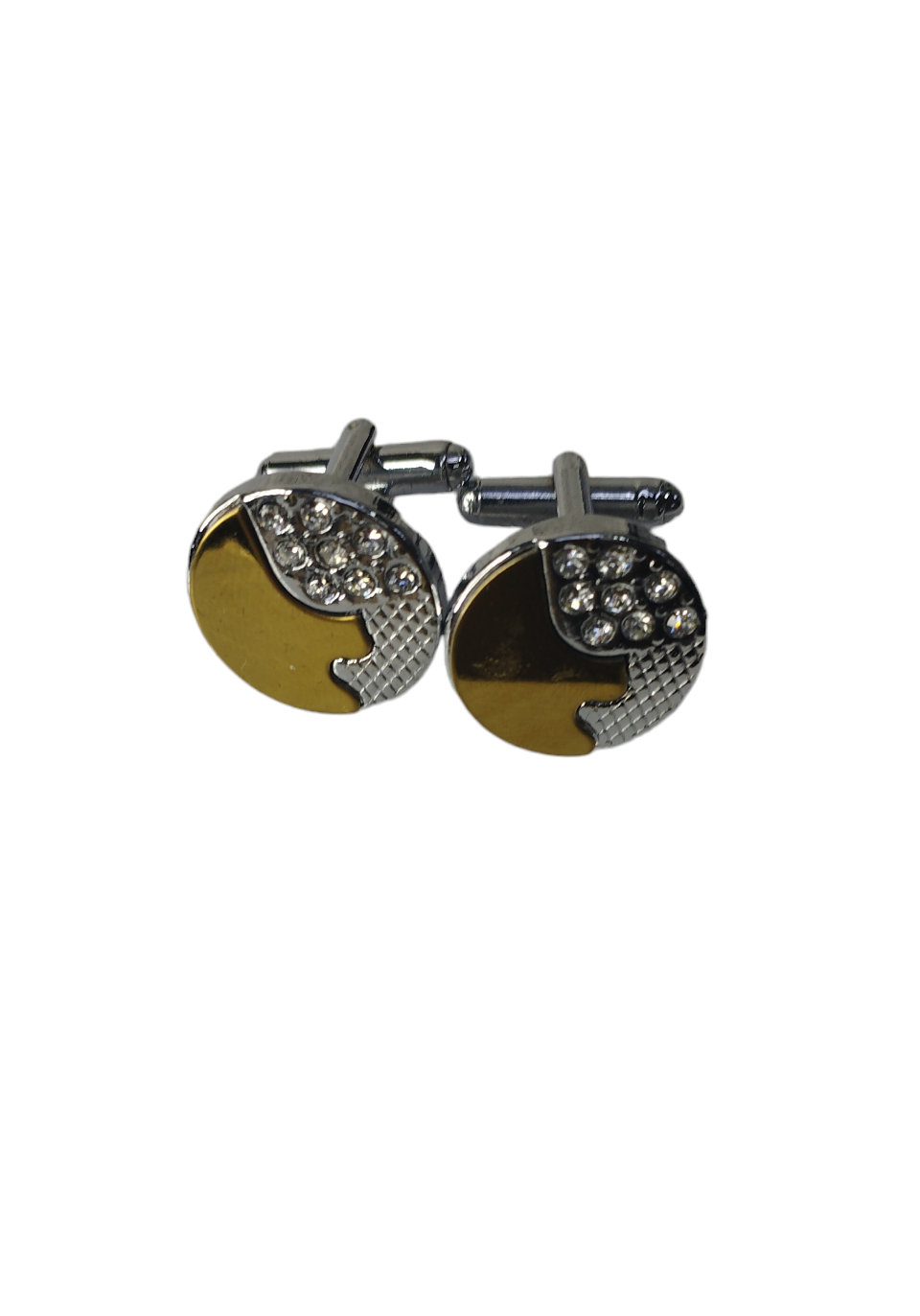 Unas colleras THOMAS J. FIEDLER en caja. Estas colleras de acero inoxidable presentan una cara con diseño en metal y su respectiva incrustación. Este par moderno se completa con un cierre de clip.