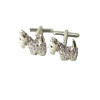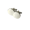 Unas colleras THOMAS J. FIEDLER en caja. Estas colleras de acero inoxidable presentan una cara con diseño en metal y su respectiva incrustación. Este par moderno se completa con un cierre de clip.