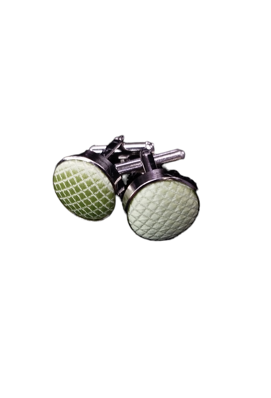 Unas colleras THOMAS J. FIEDLER en caja. Estas colleras de acero inoxidable presentan una cara con diseño en metal y su respectiva incrustación. Este par moderno se completa con un cierre de clip.