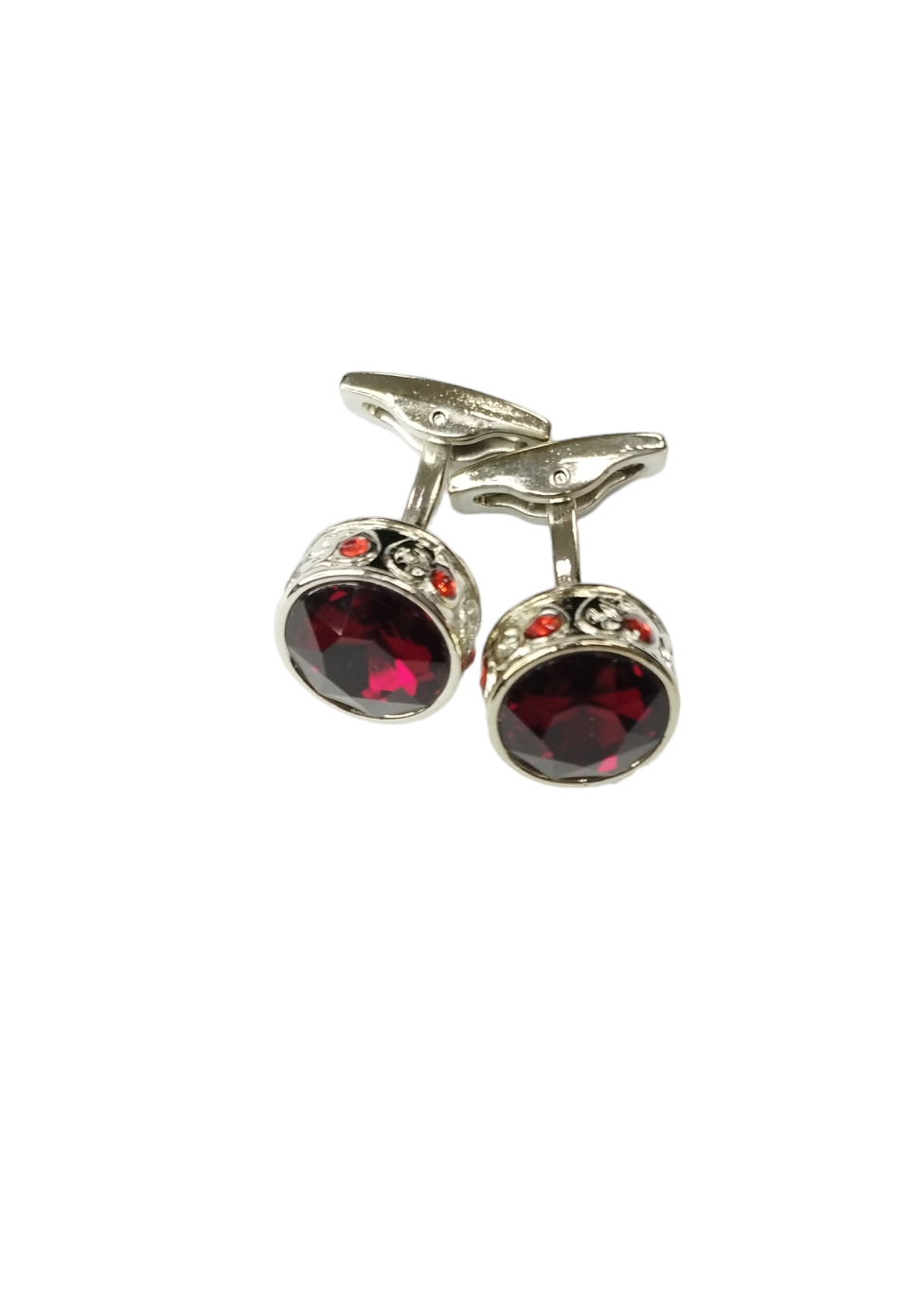 Unas colleras THOMAS J. FIEDLER en caja. Estas colleras de acero inoxidable presentan una cara con diseño en metal y su respectiva incrustación. Este par moderno se completa con un cierre de clip.