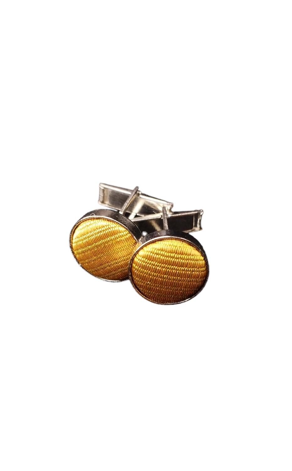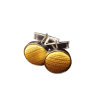 Unas colleras THOMAS J. FIEDLER en caja. Estas colleras de acero inoxidable presentan una cara con diseño en metal y su respectiva incrustación. Este par moderno se completa con un cierre de clip.