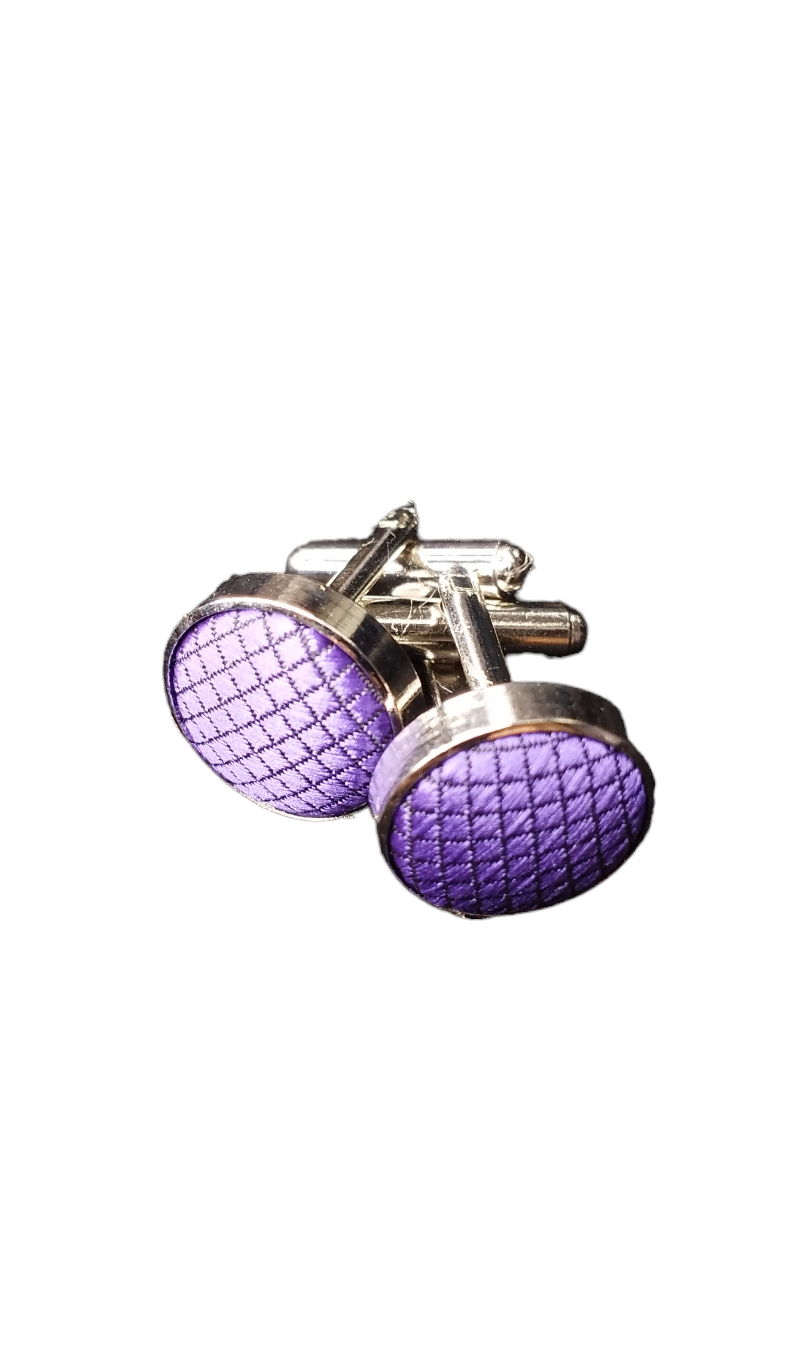 Unas colleras THOMAS J. FIEDLER en caja. Estas colleras de acero inoxidable presentan una cara con diseño en metal y su respectiva incrustación. Este par moderno se completa con un cierre de clip.