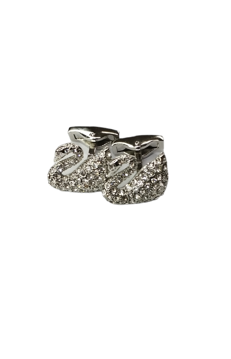 Unas colleras THOMAS J. FIEDLER en caja. Estas colleras de acero inoxidable presentan una cara con diseño en metal y su respectiva incrustación. Este par moderno se completa con un cierre de clip.