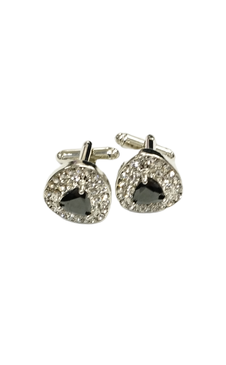 Unas colleras THOMAS J. FIEDLER en caja. Estas colleras de acero inoxidable presentan una cara con diseño en metal y su respectiva incrustación. Este par moderno se completa con un cierre de clip.
