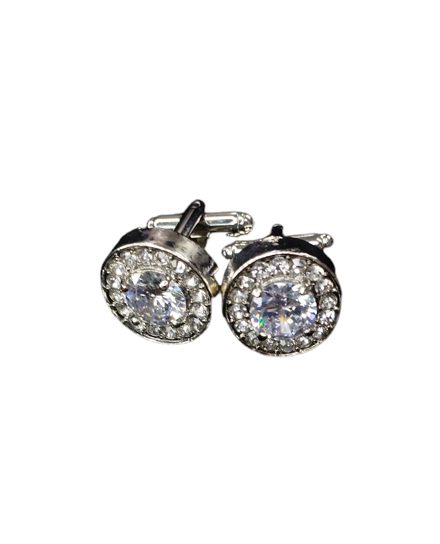 Unas colleras THOMAS J. FIEDLER en caja. Estas colleras de acero inoxidable presentan una cara con diseño en metal y su respectiva incrustación. Este par moderno se completa con un cierre de clip.