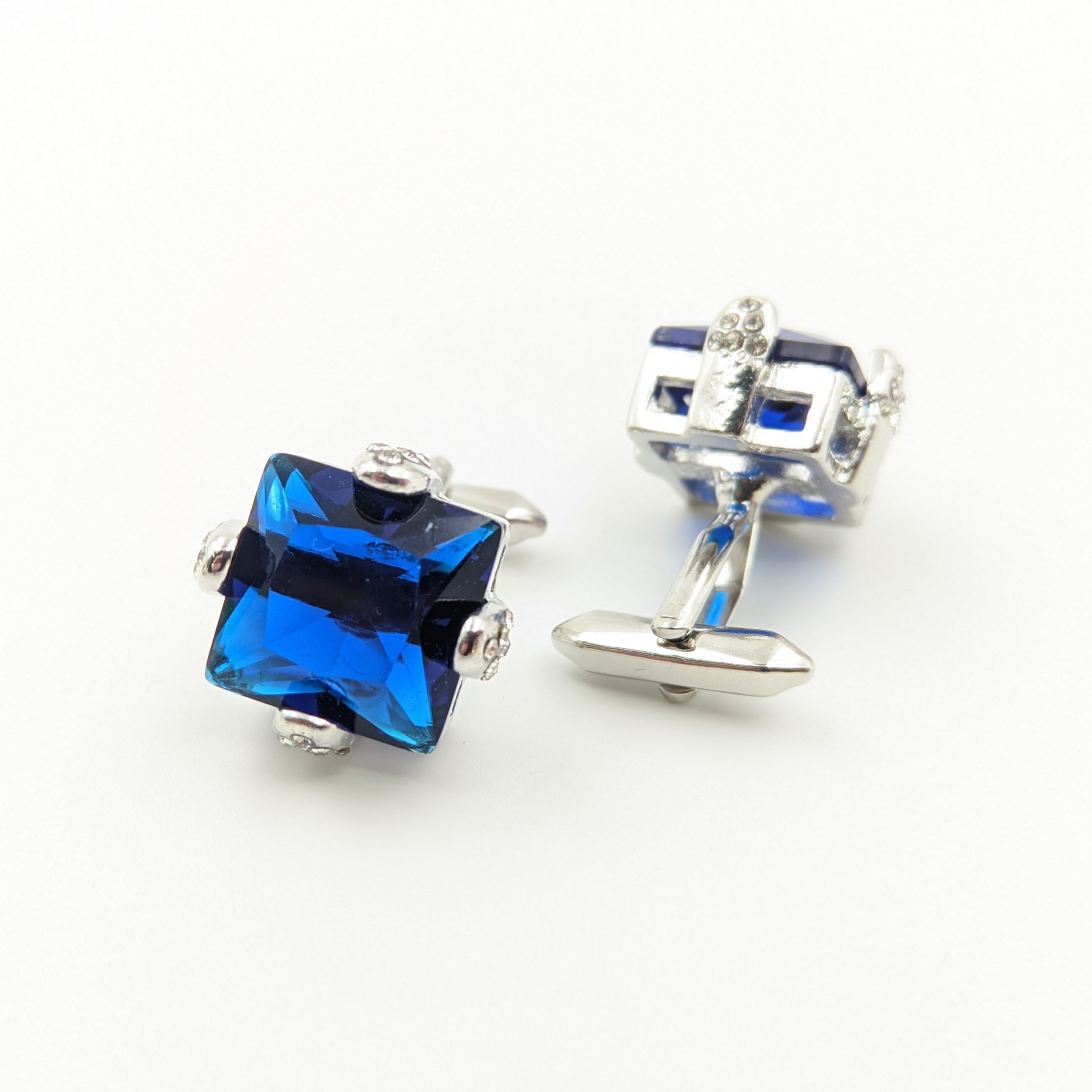 Colleras metálicas con incrustación | Cristal azul