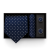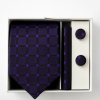 Set de corbata de tres piezas compuesto por corbata elaborada en 80% seda y 20% poliéster.