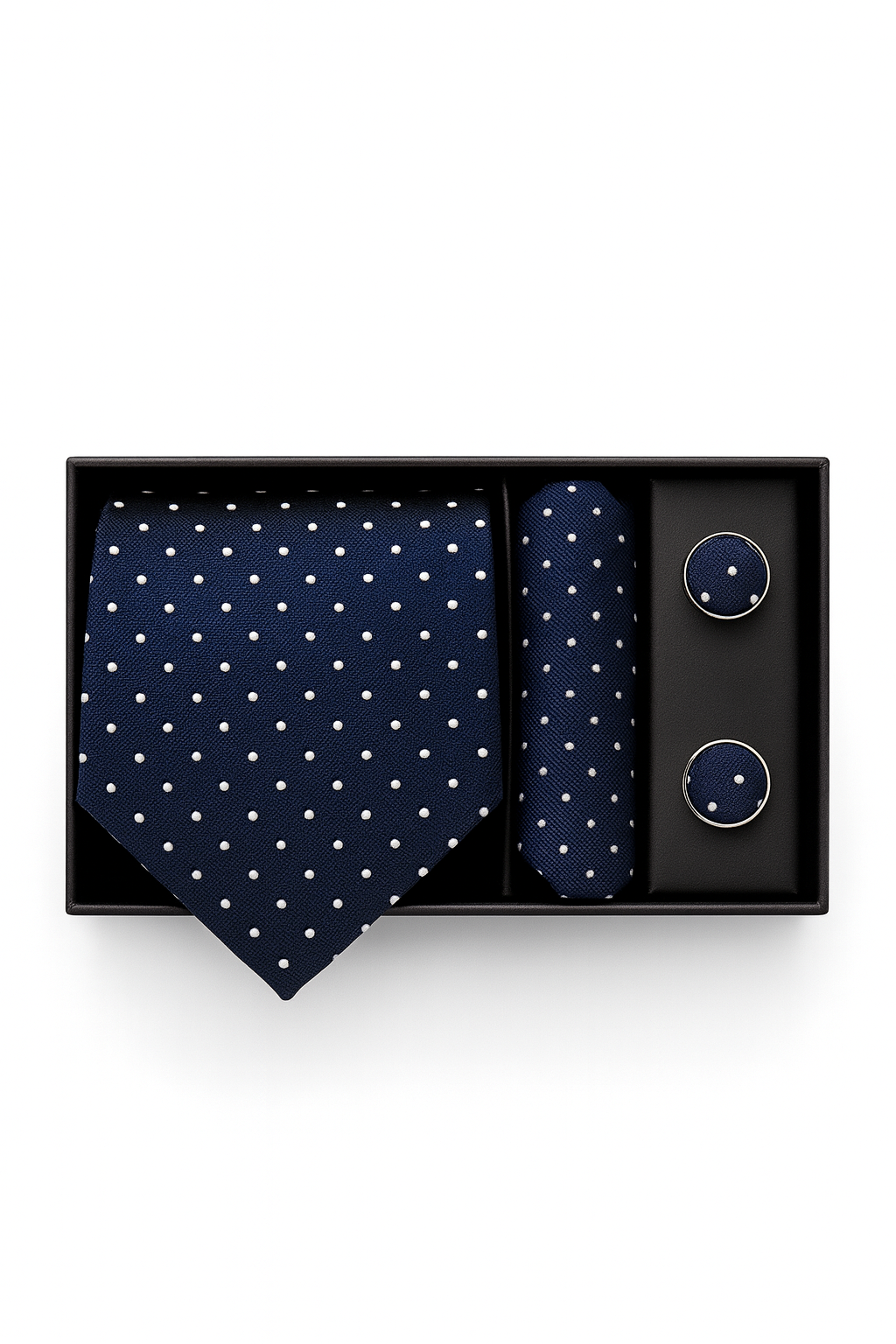 Set de corbata de cuatro piezas compuesto por corbata elaborada en 80% seda y 20% poliéster