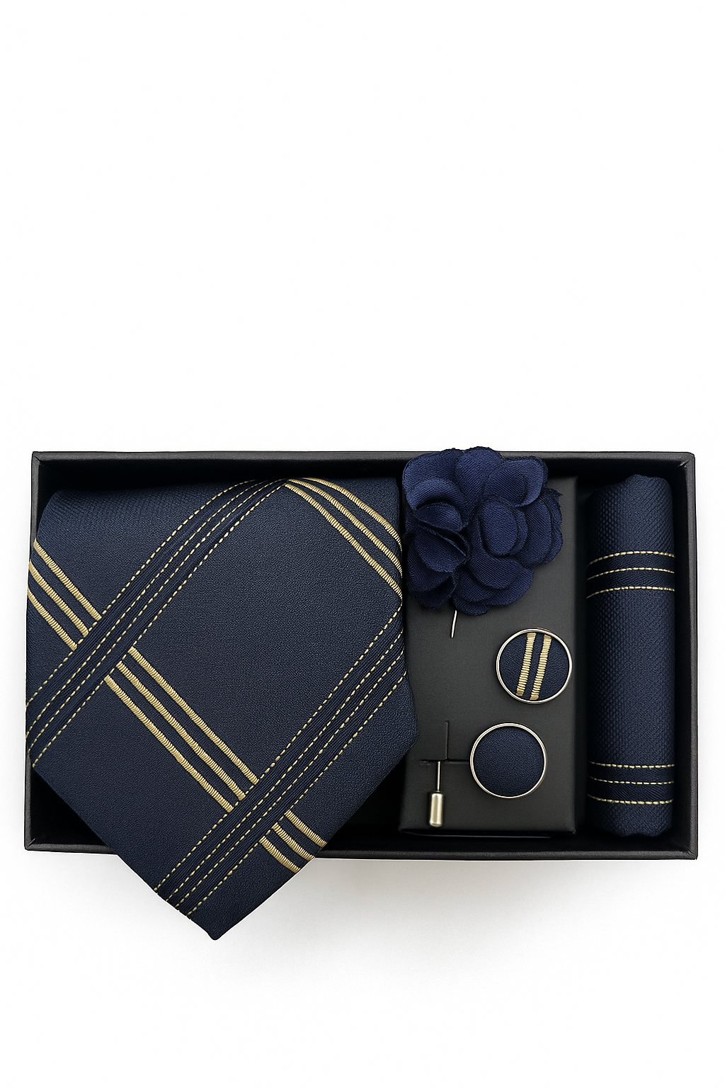 Categorías: Set corbata, VARON Etiquetas: boutonniere, colleras, corbata, pañuelo