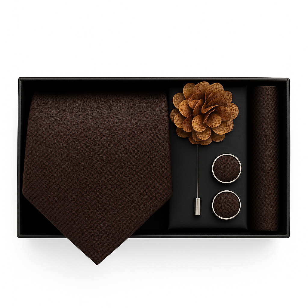 Set de corbata de cuatro piezas compuesto por corbata elaborada en 80% seda y 20% poliéster