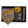 Set de corbata de tres piezas compuesto por corbata elaborada en 80% seda y 20% poliéster.