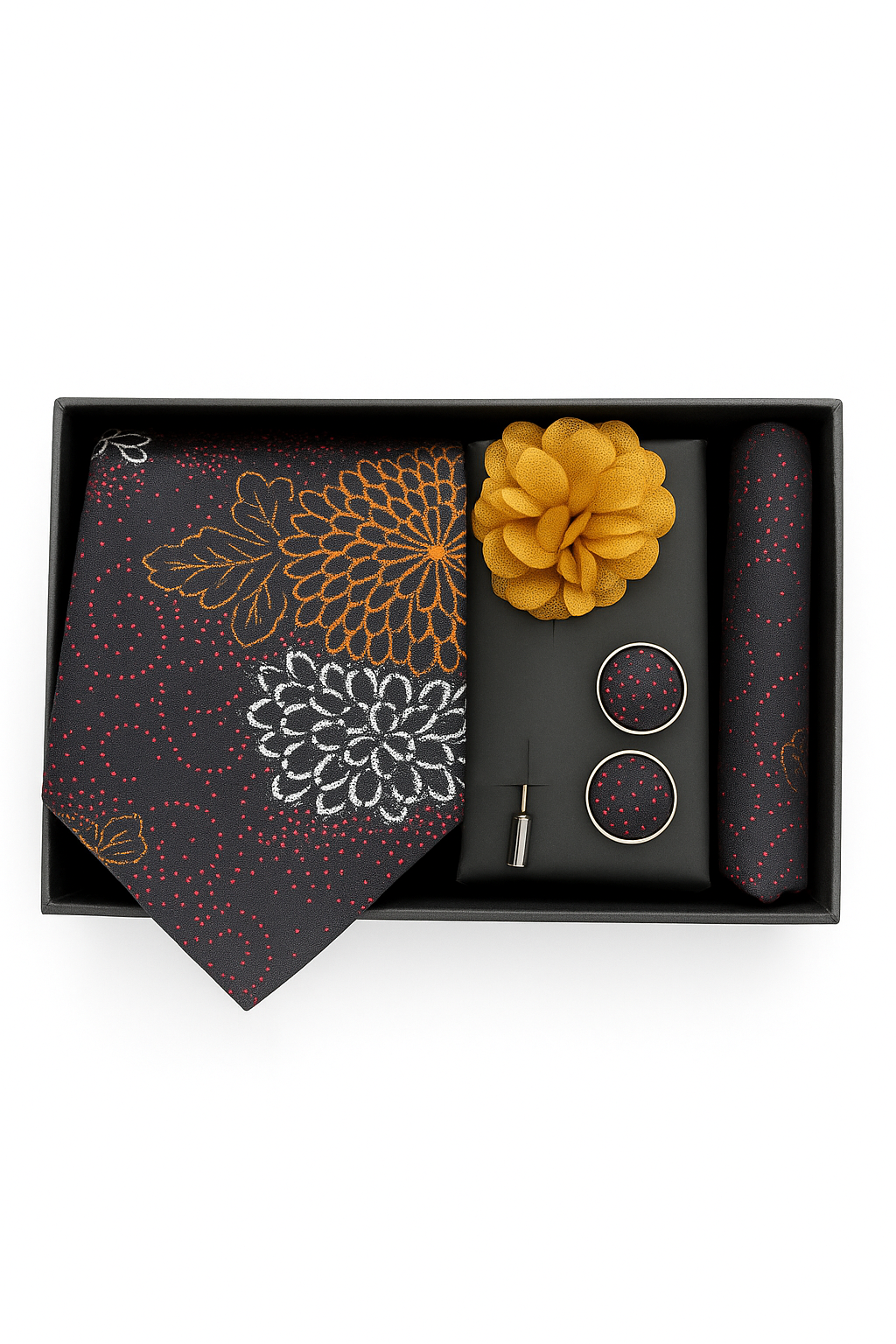 Set de corbata de cuatro piezas compuesto por corbata elaborada en 80% seda y 20% poliéster
