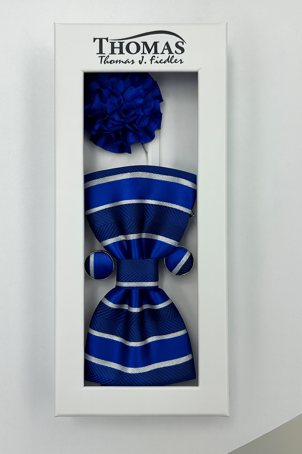 Set de corbata de tres piezas compuesto por corbata elaborada en 80% seda y 20% poliéster.