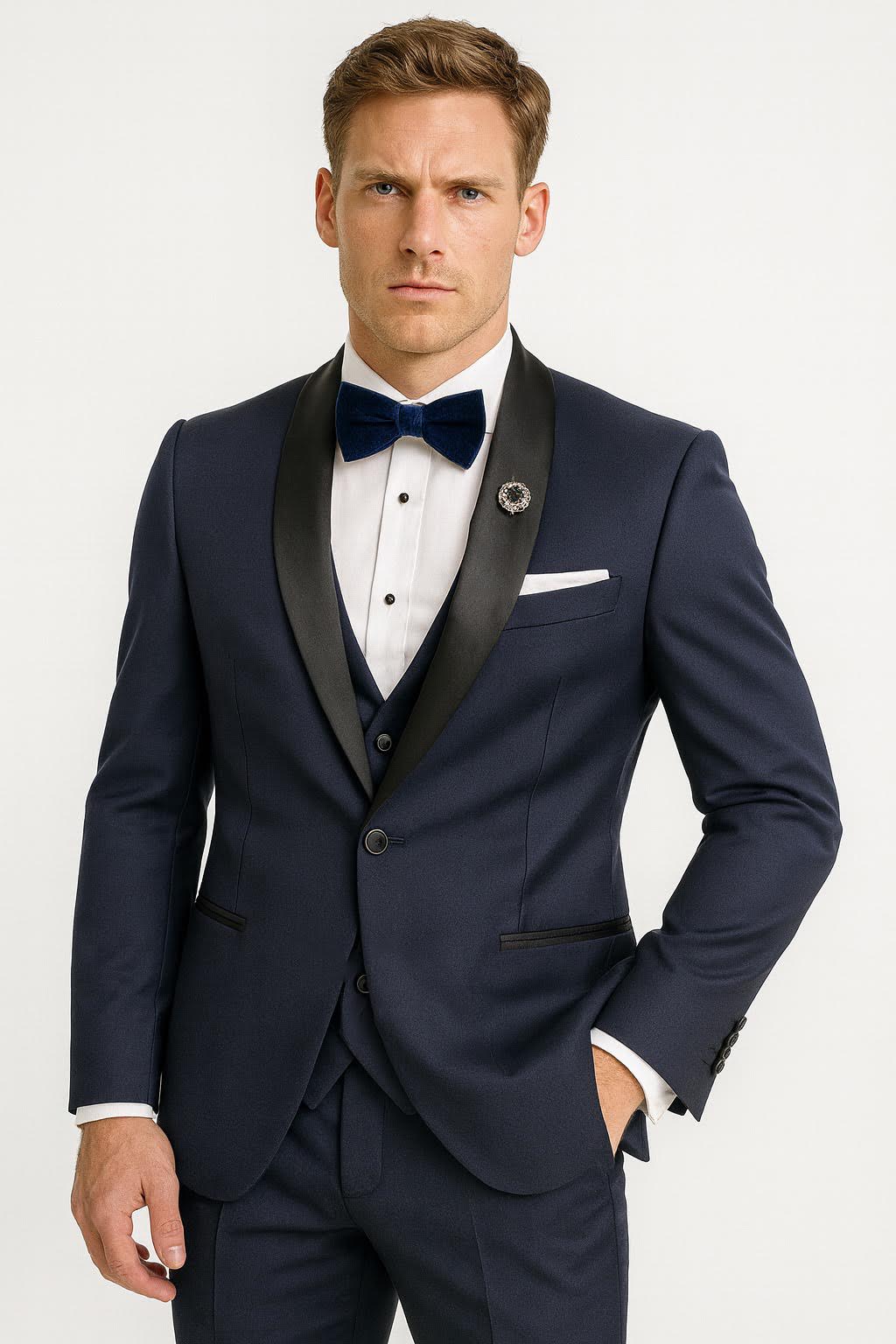 Lúcete en este Smoking Slim Fit de 2 Piezas, ideal para galas, bodas y eventos de etiqueta.