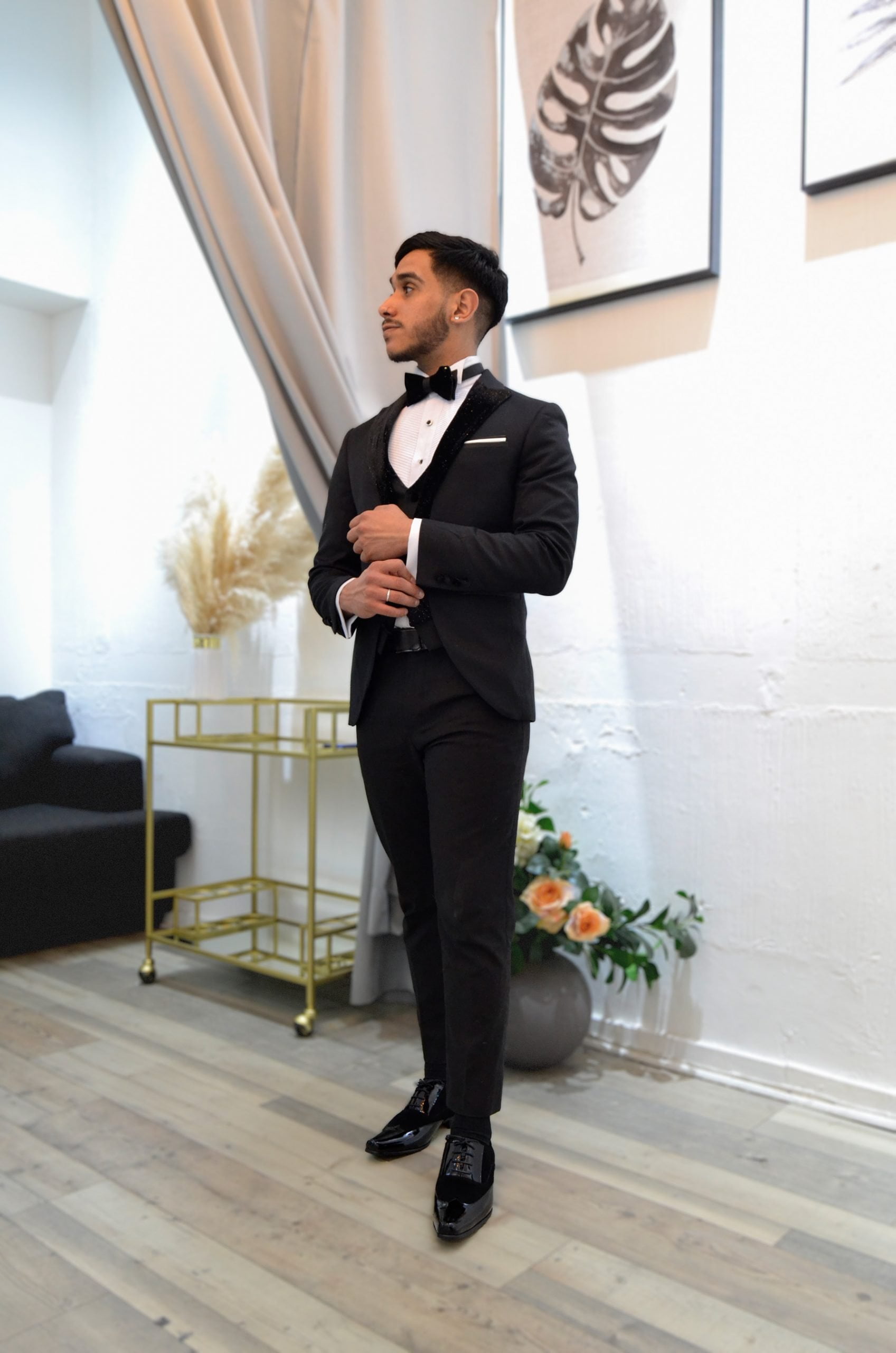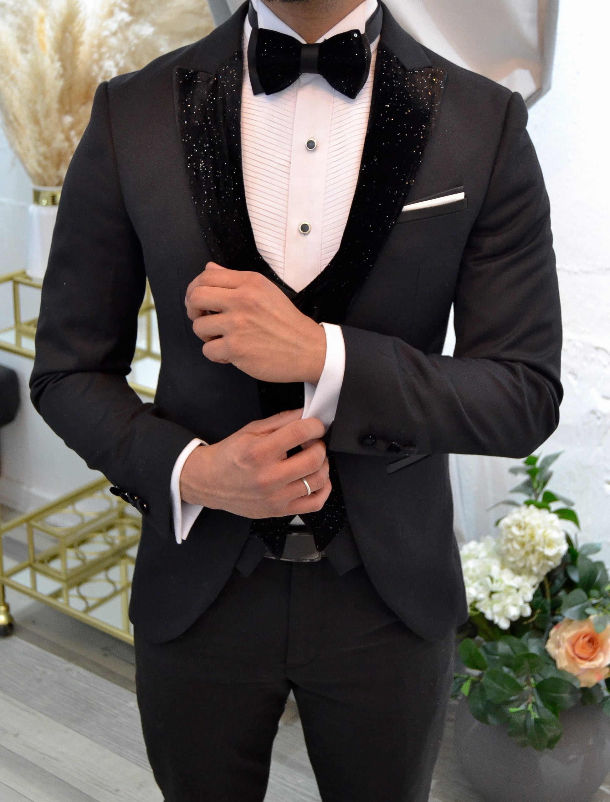 Lúcete en este Smoking Slim Fit de 3 Piezas, ideal para galas, bodas y eventos de etiqueta.