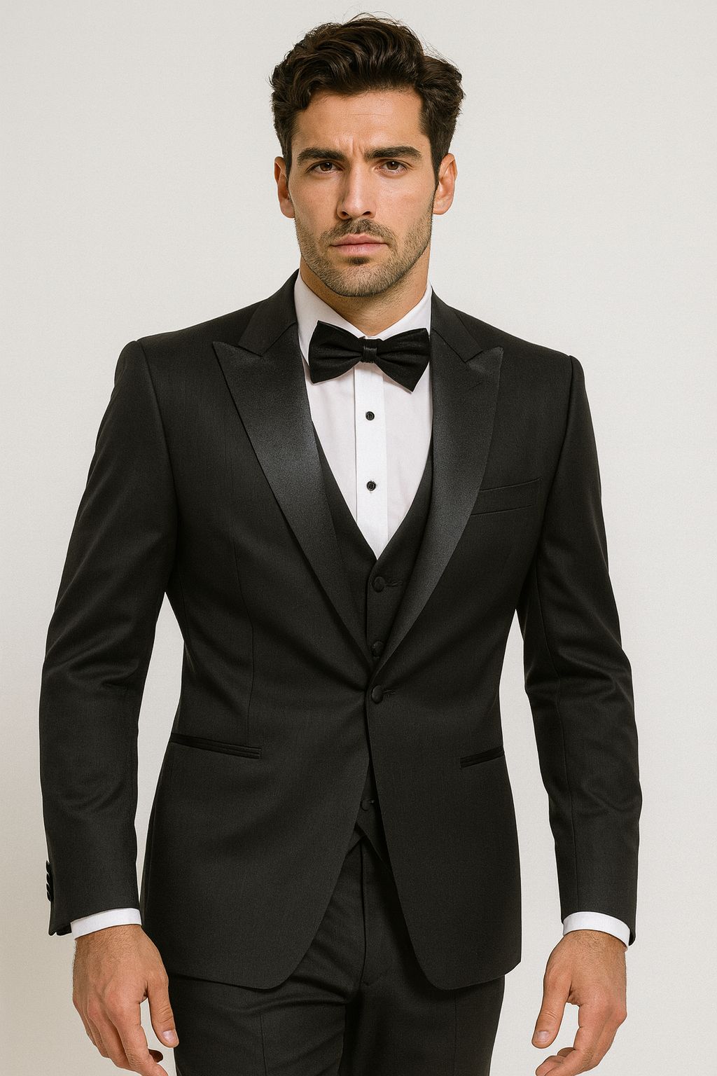 Lúcete en este moderno Smoking Slim Fit de 3 piezas, ideal para galas, bodas y eventos de etiqueta.
