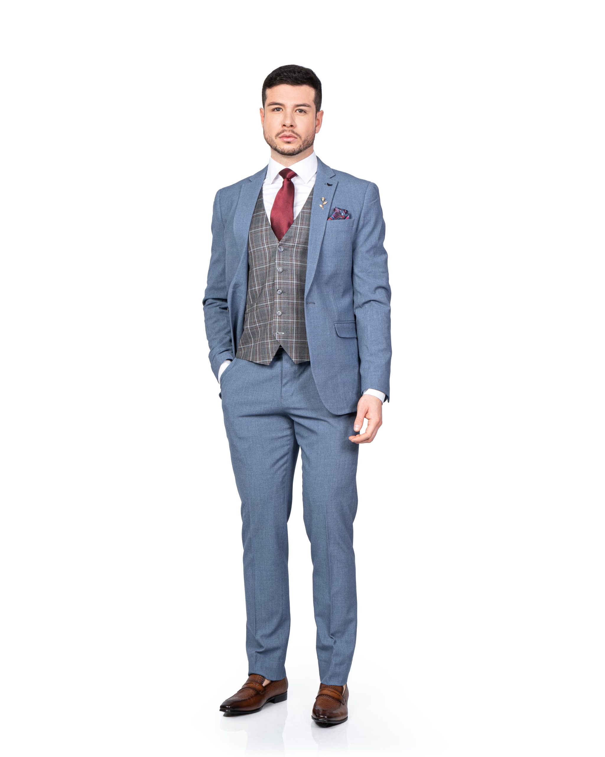 Lúcete en este ligero Traje Slim Fit de 3 Piezas, perfecto para ocasión de etiqueta, eventos formales como bodas, bautizos y graduaciones.