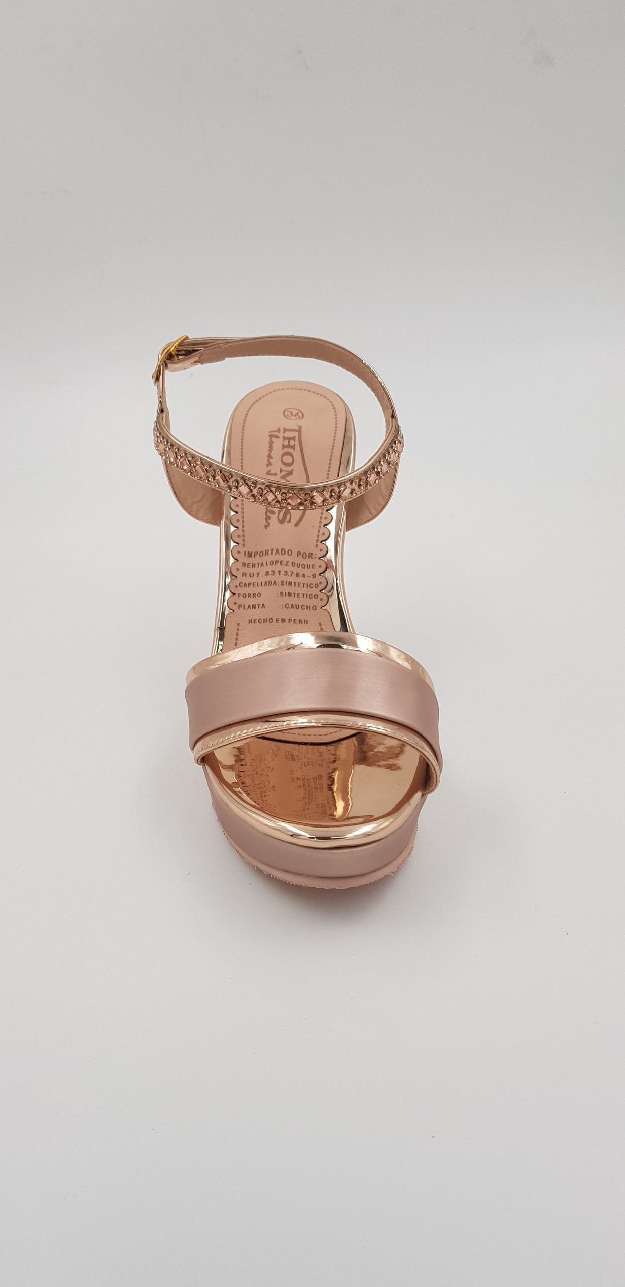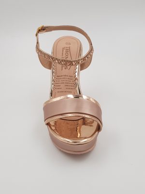 Zapato de fiesta de taco alto, para mujer, de color oro rosa y detalles en pedrería de fantasía