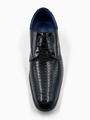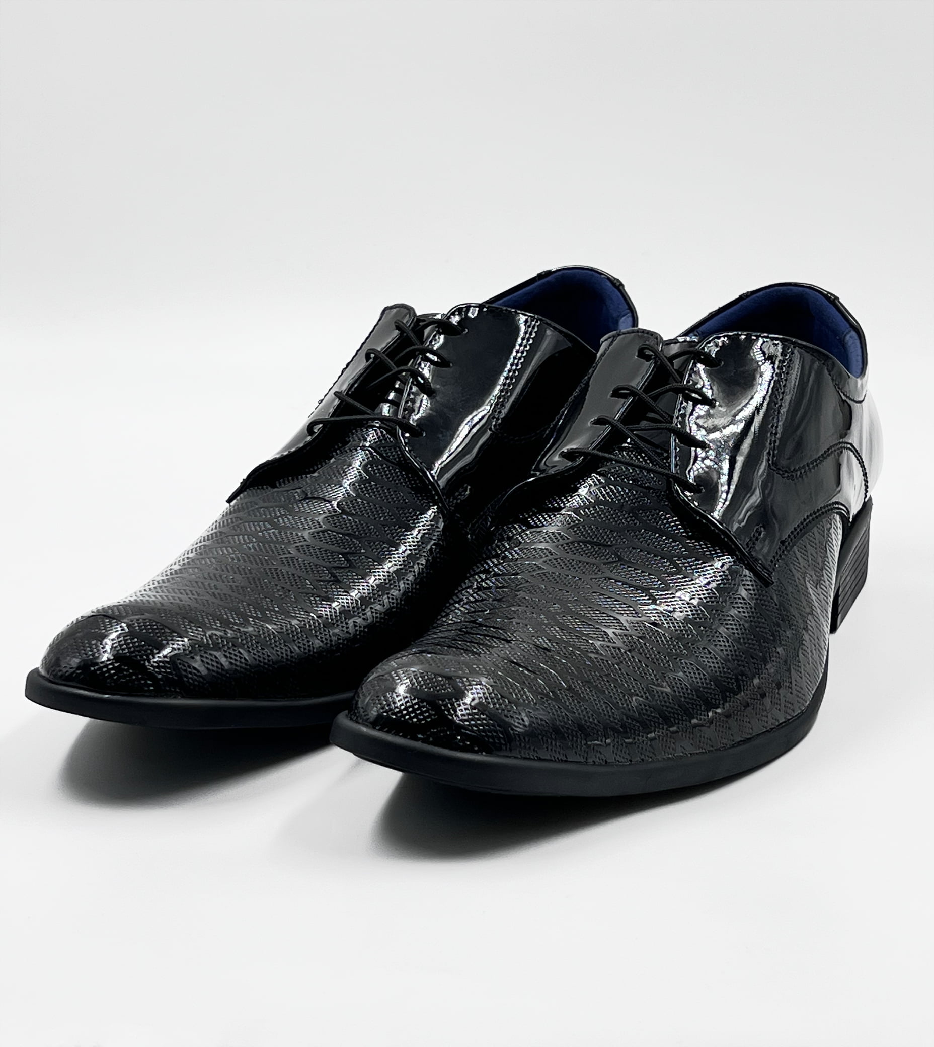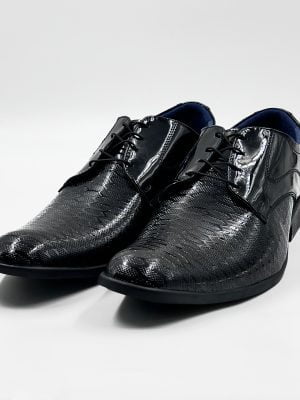Zapato | Derby | Charol Negro | Diseño Serpiente | Punta Redonda